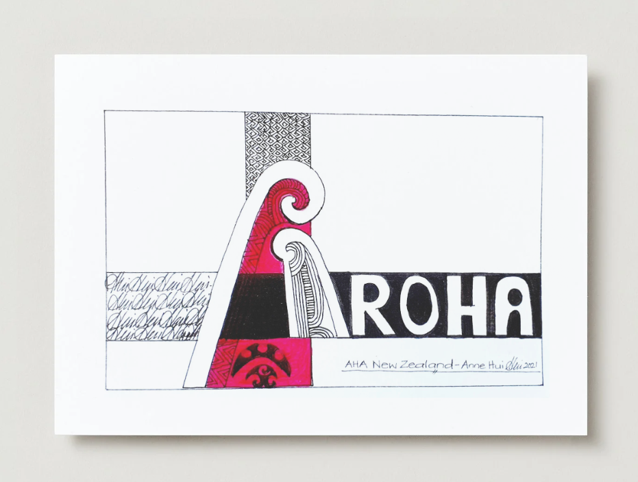 This stylized ink drawing includes the Puhoro design depicting strength and speed. Often seen on the thighs of Māori Warriors.